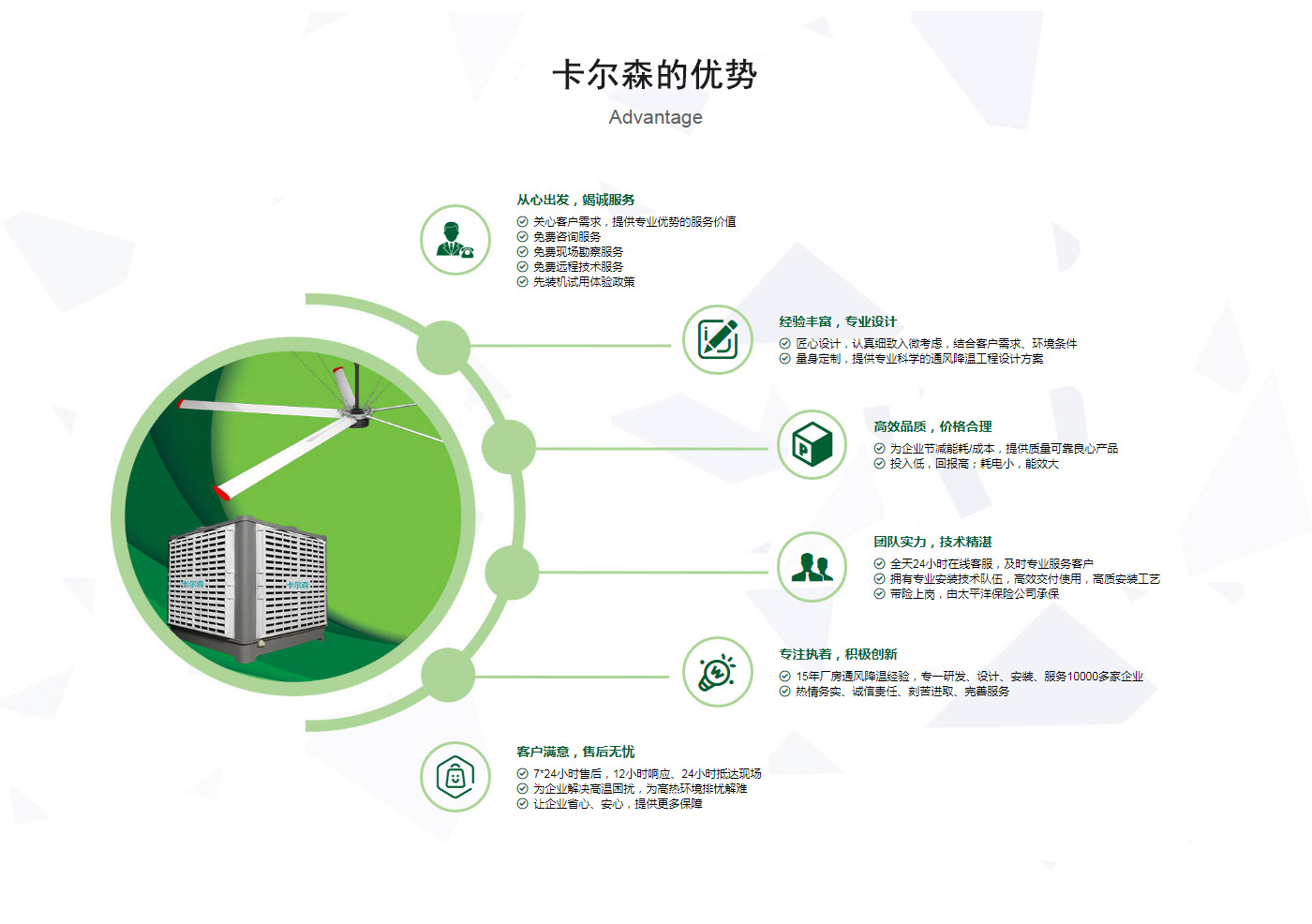 ??晉江市卡爾森機(jī)電設(shè)備有限公司是一家集設(shè)計(jì)、制作、銷售、安裝工業(yè)通風(fēng)設(shè)備、中央空調(diào)、節(jié)能環(huán)保空調(diào)、脈沖除塵設(shè)備、環(huán)境凈化工程、等環(huán)保工程企業(yè)。并提供環(huán)境影響評(píng)價(jià)、環(huán)保工程總承包、環(huán)保工程設(shè)計(jì)、環(huán)保工程運(yùn)營、環(huán)保工程成套設(shè)備等一站式服務(wù)。公司一直誠心服務(wù)于工業(yè)廠房的通風(fēng)設(shè)施,我們的產(chǎn)品:“品種齊全、質(zhì)量?jī)?yōu)越”。根據(jù)客戶的需求精心設(shè)計(jì),高質(zhì)量的制造,力求使每個(gè)產(chǎn)品都達(dá)到合理耐用、節(jié)能環(huán)保。科學(xué)的設(shè)計(jì)和精美高品質(zhì)的產(chǎn)品,完善的服務(wù)系統(tǒng),加強(qiáng)售前、售中、售后服務(wù),對(duì)顧客在使用商品中出現(xiàn)的各種問題及時(shí)解決,使顧客無后顧之憂。產(chǎn)品廣泛適用于各類型制造業(yè)、機(jī)械類、五金冶煉、食品、化工、電子、紡織、噴涂、娛樂以及服務(wù)等場(chǎng)所。我們秉承“質(zhì)理過關(guān)、價(jià)格合理、交期準(zhǔn)時(shí)、服務(wù)周到”而受到新老客戶的好評(píng)和信賴。我們堅(jiān)持“客戶至上、質(zhì)量上乘”為宗旨,努力工作,為您換來潔凈美好的明天。卡爾森愿以過硬的質(zhì)量,良好的信譽(yù)同各界朋友一起開創(chuàng)更加輝煌的未來。